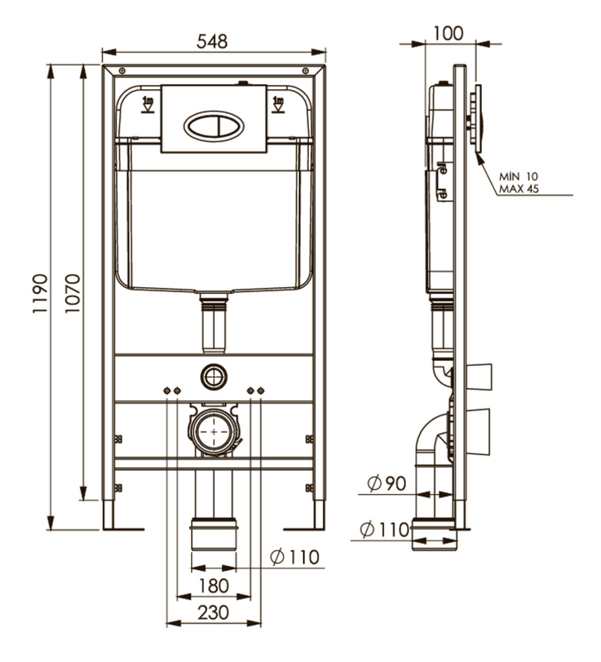 - Комплект крепежных элементов для установки унитаза (установочное расстояние 180 мм или 230 мм);