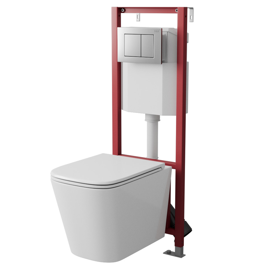 Инсталляция D&K - это система креплений и приспособлений, позволяющих произвести установку подвесного унитаза. Крепится она к стене или за специальным декоративным коробом. На раму устанавливается чаша подвесного унитаза, сливной бачок, различные приспособления и механизмы, вентили и краны, предохранительные клапаны. Также система инсталляции позволяет подключать трубы для подачи и отведения воды. Особенности системы инсталляции D&K: