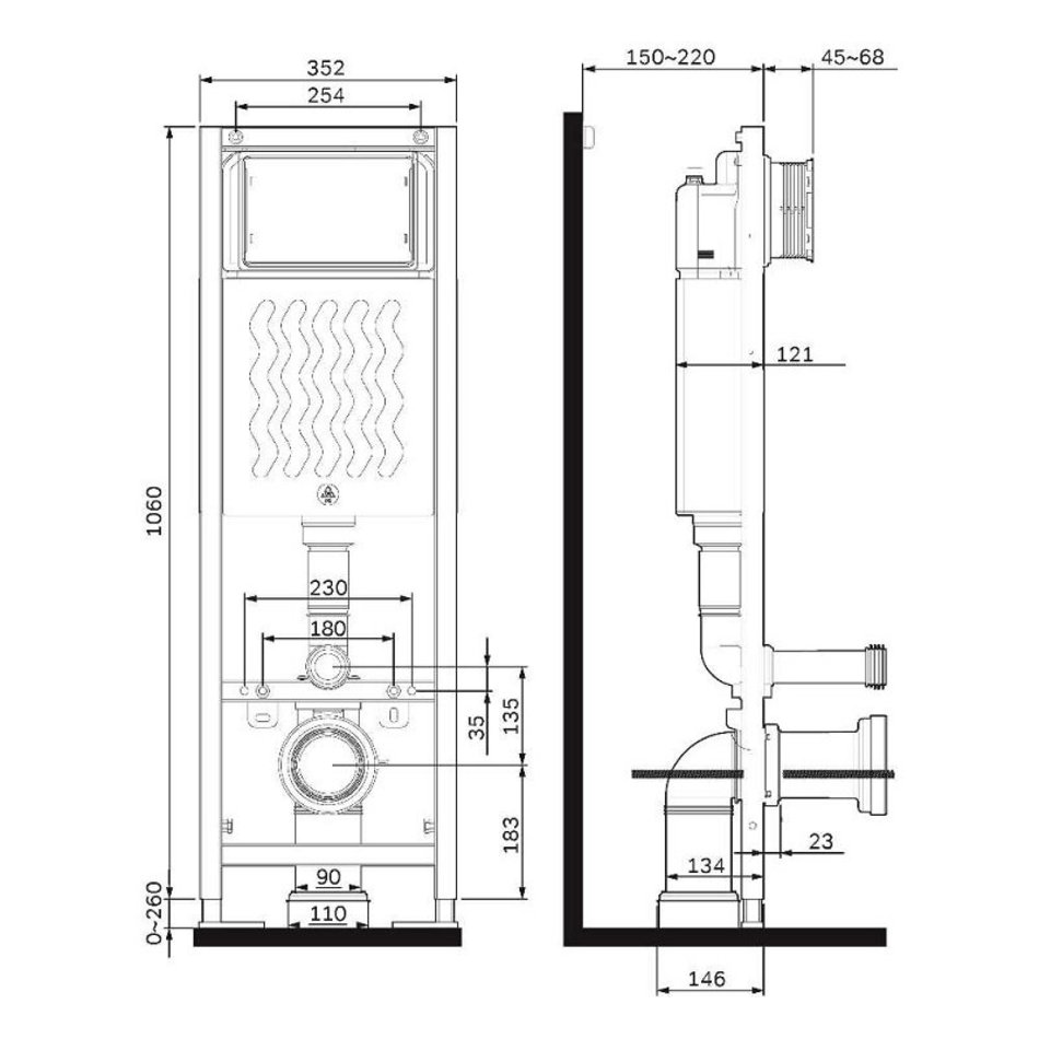 - Максимально полный комплект поставки, включающий все необходимые крепления, патрубки, звукоизолирующую прокладку. Экономия пространства благодаря узкой раме – 352 мм шириной. Подходит даже для самых малогабаритных ванных комнат. Заливной клапан с низким уровнем шума - Класс II, согласно европейского стандарта EN 14124.