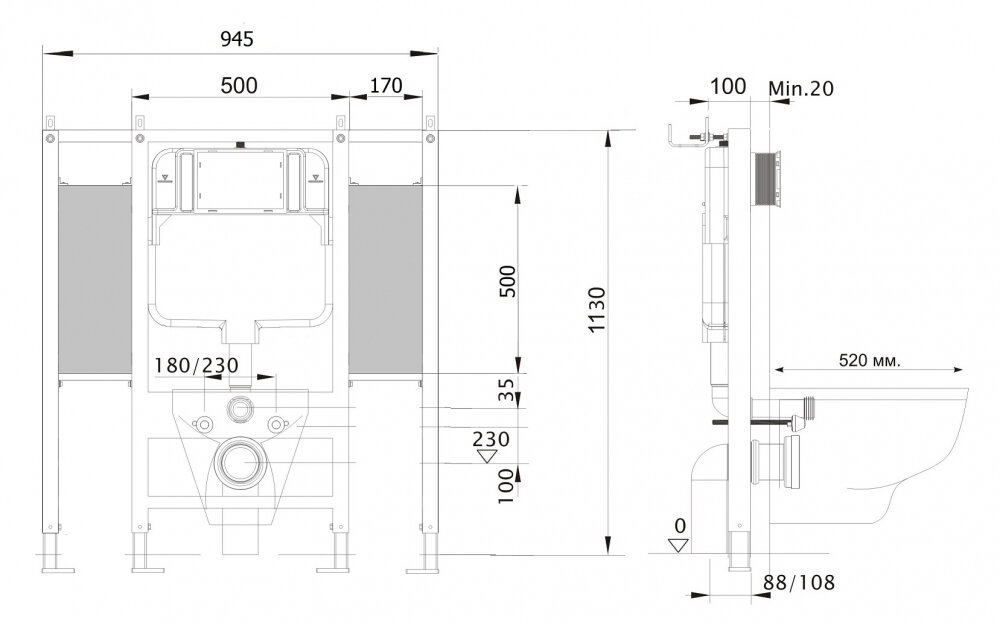 - Инсталляция для подвесного унитаза для лиц с ограниченными возможностями, с возможностью установки поручней и опор