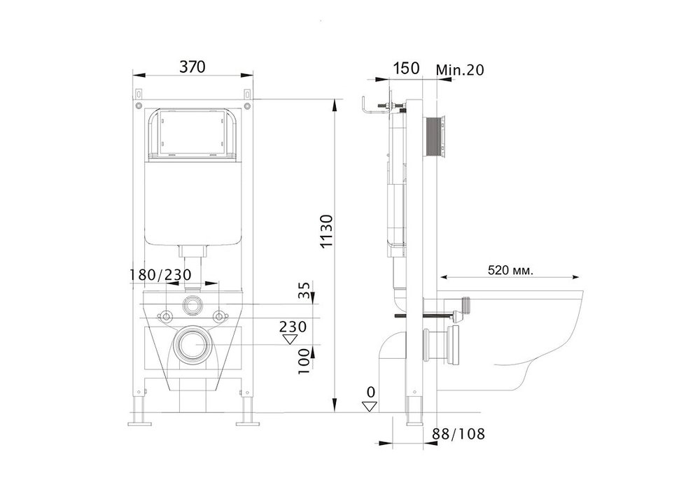 Комплектация: монтажная рама, смывной бачок, звукоизоляционная прокладка.