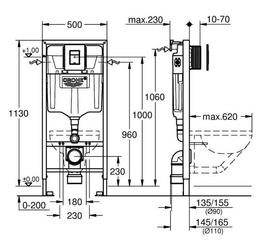 Инсталляция для унитаза 3 в 1 Grohe Solido 39939000, клавиша черная матовая, крепления