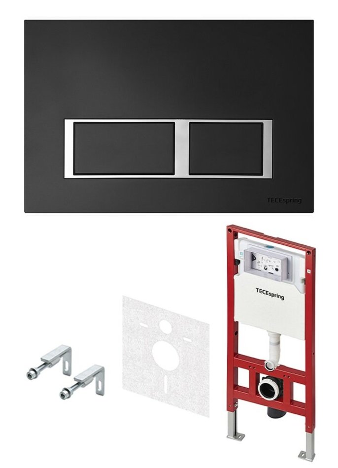 Инсталляция для унитаза 4 в 1 TECEspring V S955202, панель смыва черная матовая с хромированным контуром