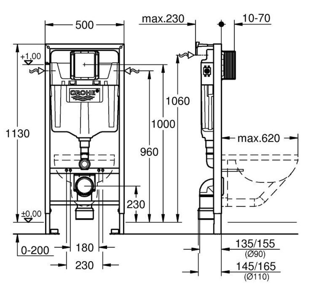 Инсталляция для унитаза 5 в 1 Grohe Rapid, клавиша черная матовая, звукоизоляция, крепления, 1000046