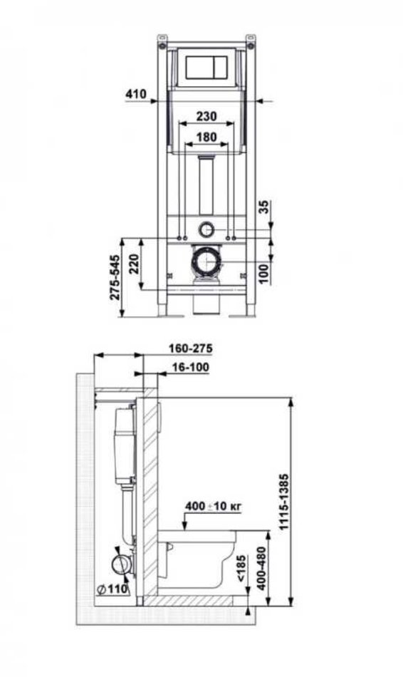 Инсталляция для унитаза Berges АТОМ 410, кнопка белая, 040333