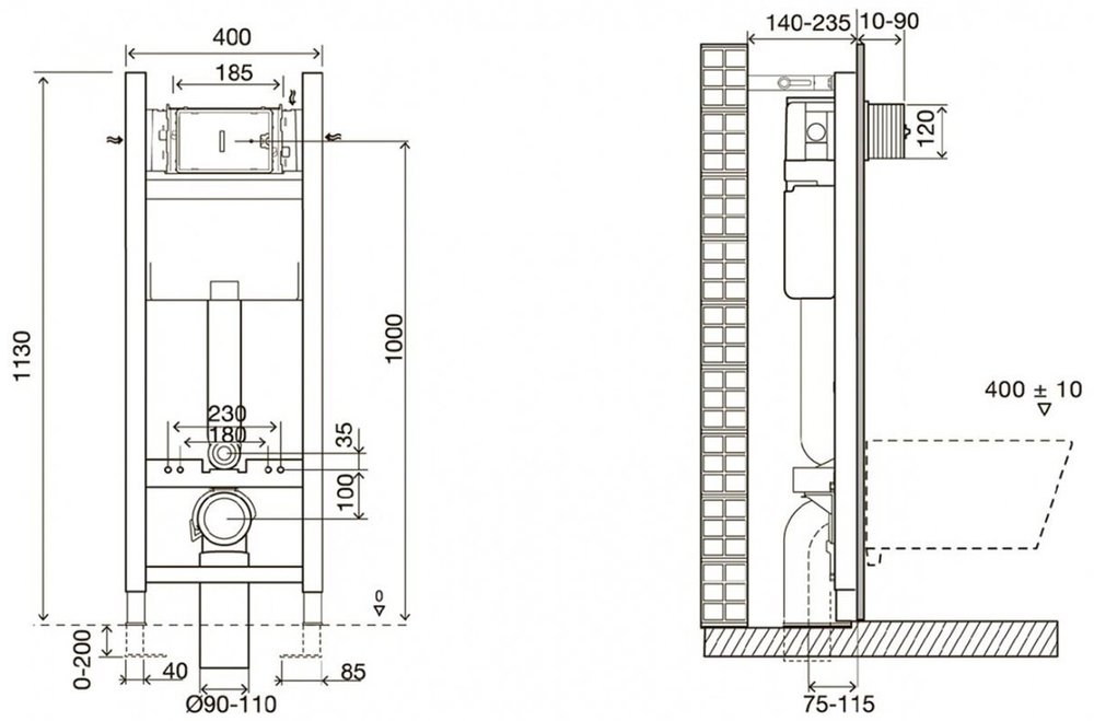 - Угловая установка : Крепления позволяют установить систему инсталляции в угол