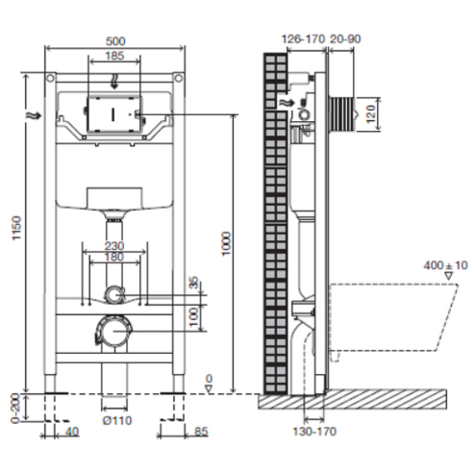 - 2 шпильки с контргайкой M12 для крепления подвесного унитаза;