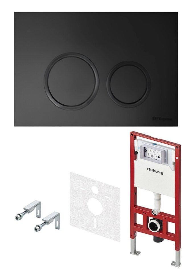 Инсталляция для унитаза Tece Tecespring S955104, панель смыва черная матовая, крепеж, белый, комплект 4 в 1