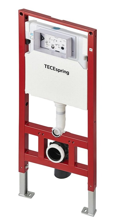 Инсталляция для унитаза Tece Tecespring S955104, панель смыва черная матовая, крепеж, красный, комплект 4 в 1