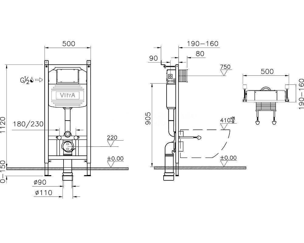 Инсталляция для унитазов Vitra с клавишей смыва матовый черный, 800-2011