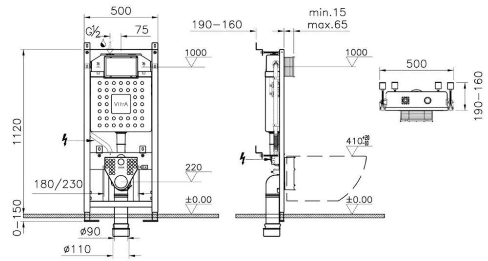 - Усиленная Механическая Инсталляция VitrA Professional для установки за гипсокартонной перегородкой и перед капитальной стеной.