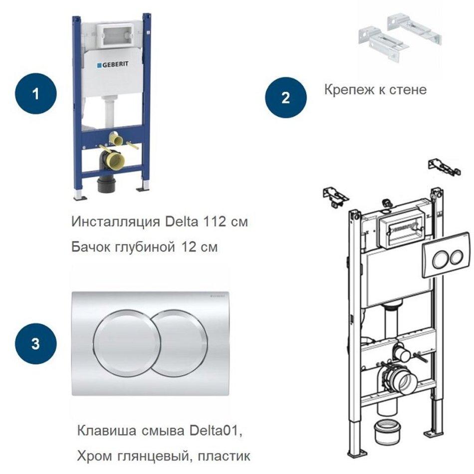 Инсталляция Geberit Duofix Delta для унитаза крепежом и с кнопкой Delta 21 хром, 458.149.21.1