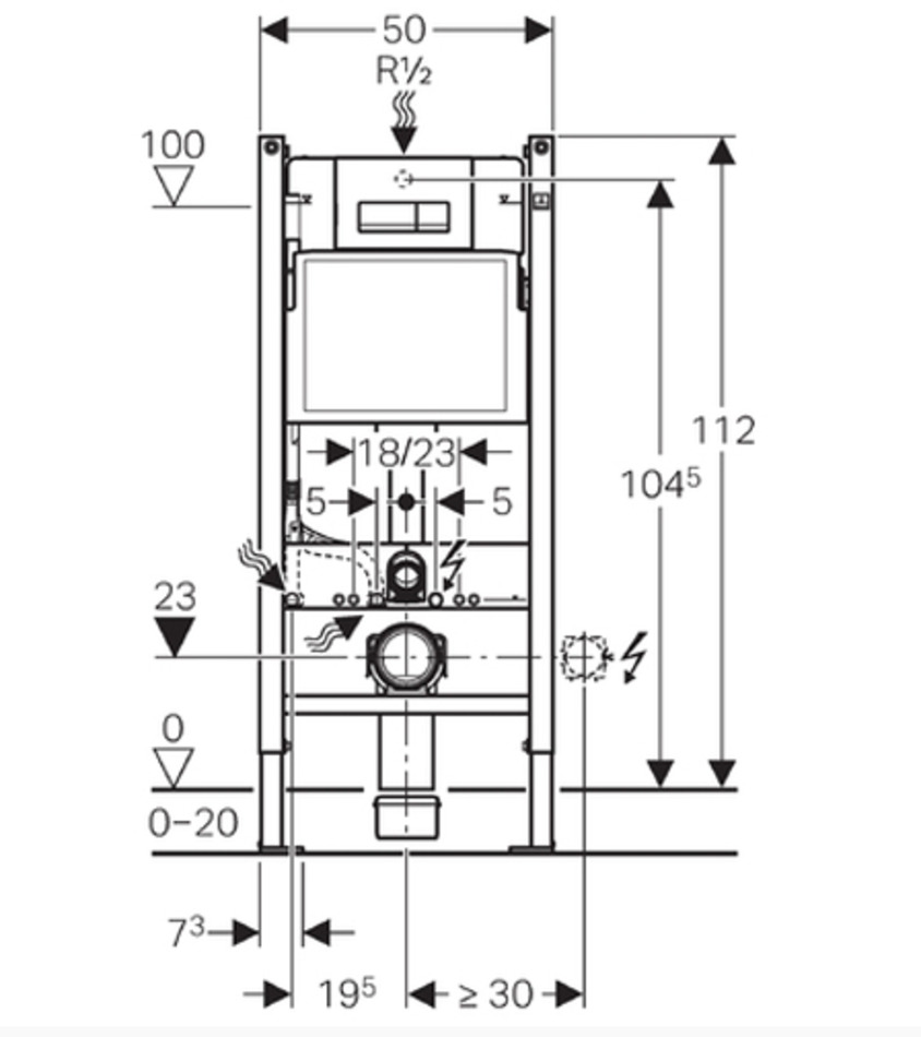 Инсталляция Geberit Duofix Delta Платтенбау 458.125.11.1 4 в 1 для унитаза с кнопкой смыва