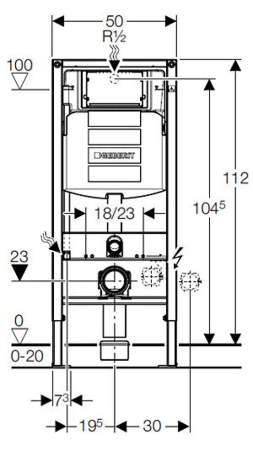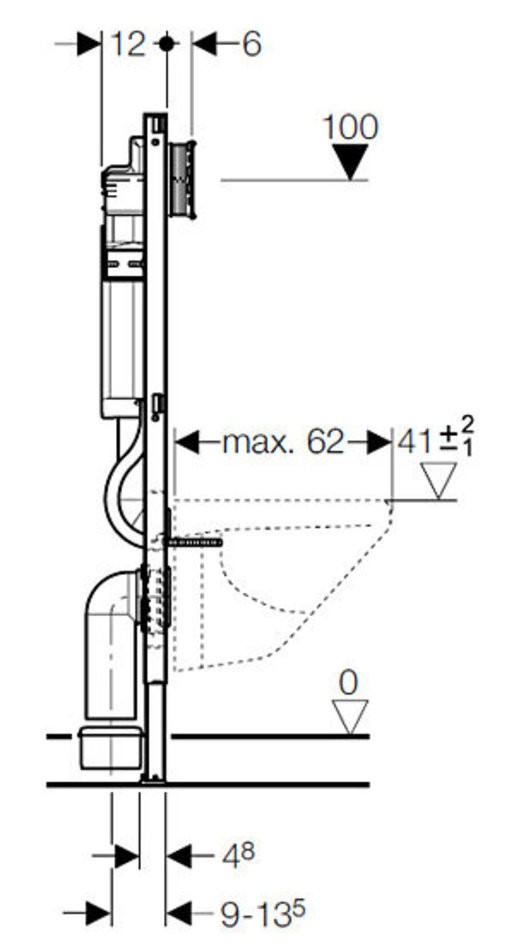 - Для использования со смывным бачком скрытого монтажа Geberit Sigma 12 см (UP320)