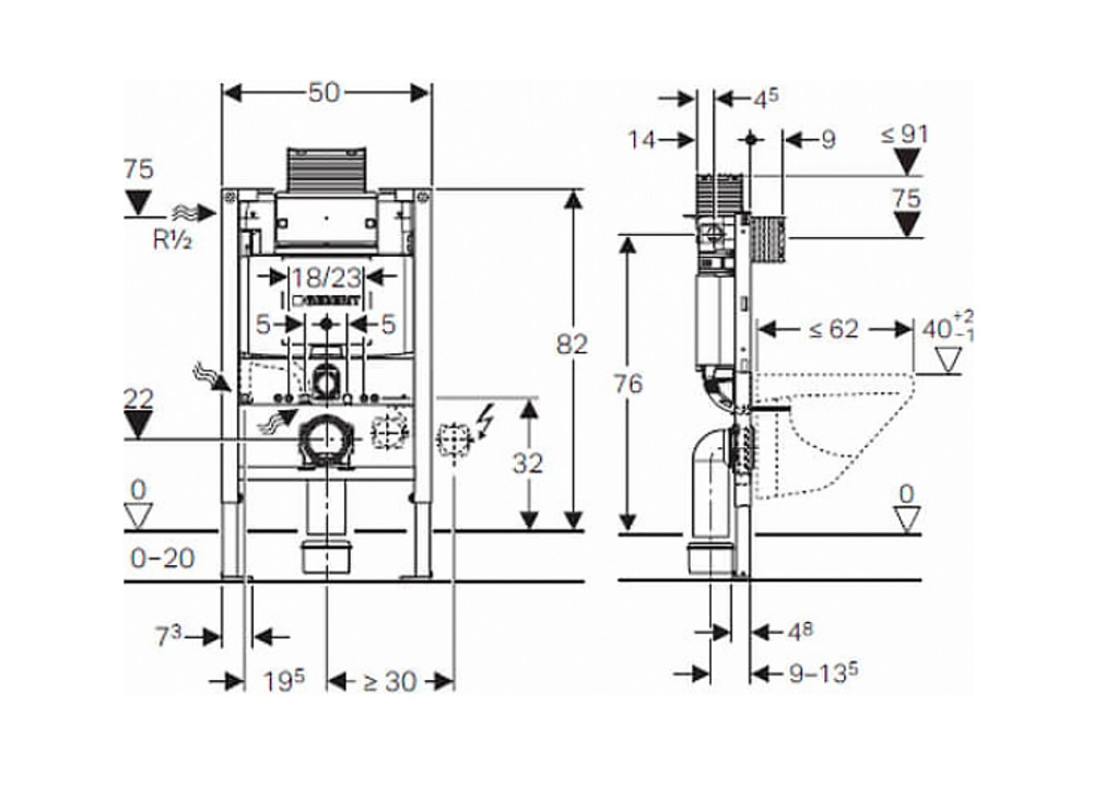 - Рама подготовлена для крепления крепежных скоб для установки санфаянса с малой контактной поверхностью