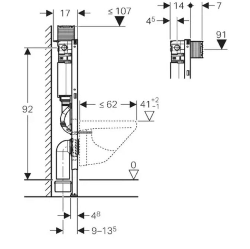 - Рама подготовлена для крепления крепежных скоб для установки санфаянса с малой контактной поверхностью