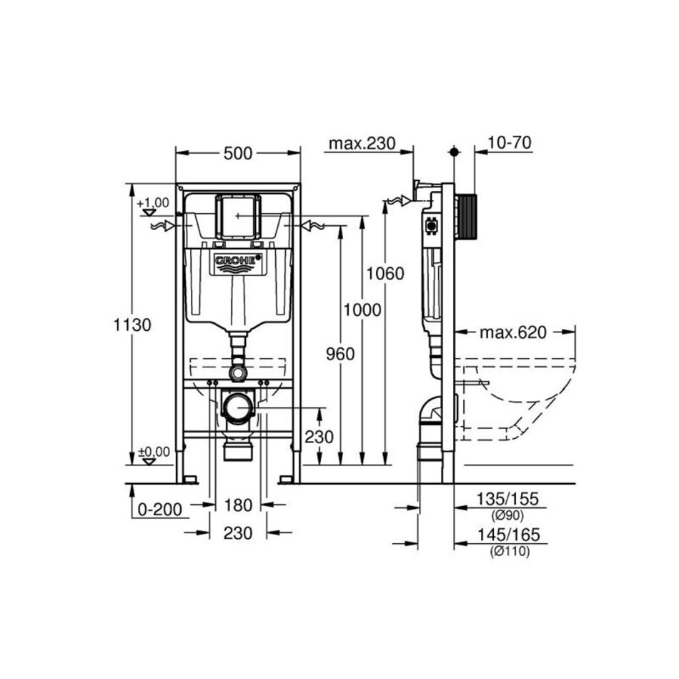 Инсталляция Grohe Rapid SL 38536001 для подвесного унитаза, стандартная, крепежные уголки в комплекте