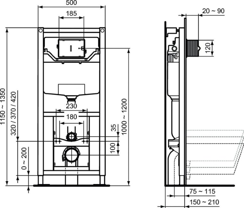 Инсталляция Ideal Standard Prosys R009567 120 M 3H для подвесного унитаза