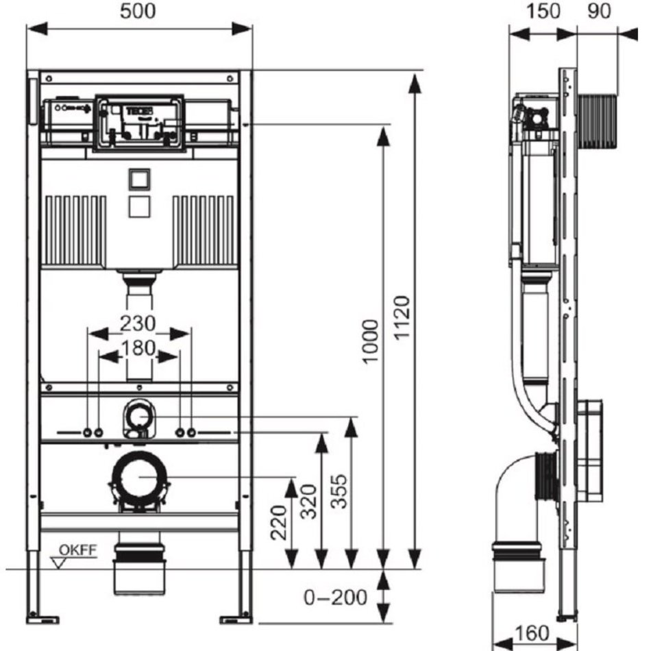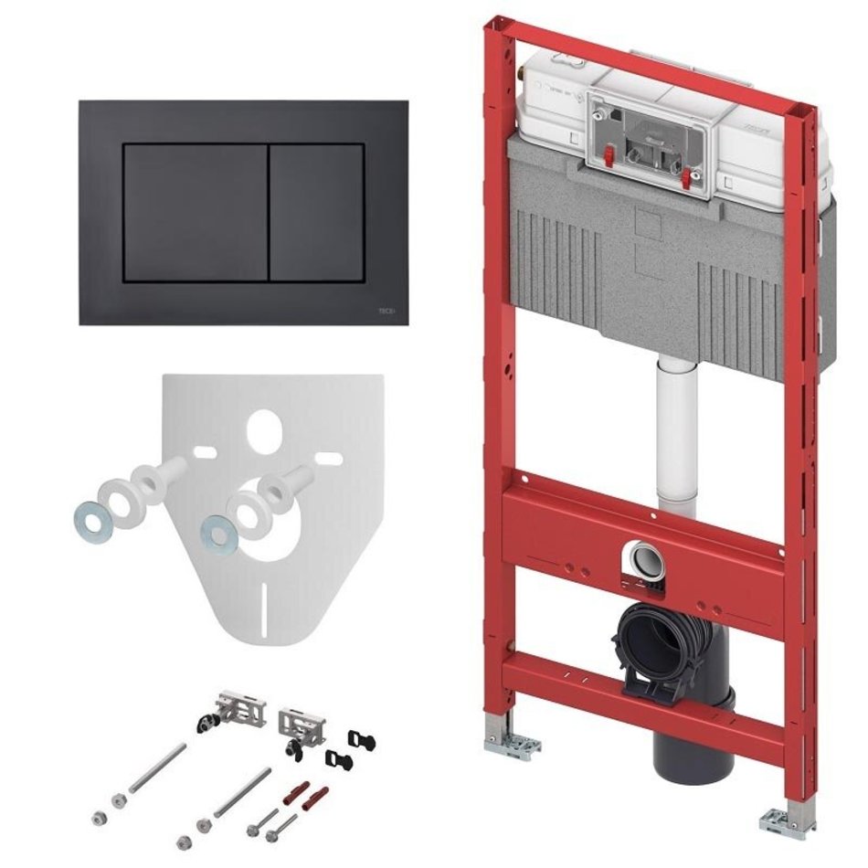 Инсталляция TECE TECEprofil UNI 2.0 для подвесного унитаза, 9300302 с крепежом и шумоизоляцией и клавишей в цвете черный матовый