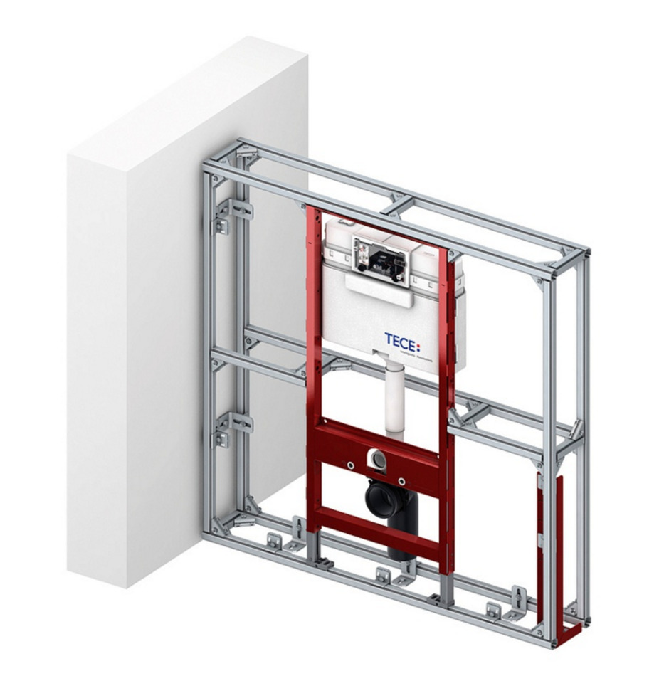 Модуль унитаза для крепления на профиле TECEprofil или монтажа в металлических или деревянных каркасных стенах, перед стеной или в углу; также подходит для сборки отдельного блока.
