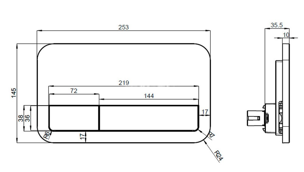 - Изолированный от конденсата скрытый смывной бачок с 2 объемами смыва 3/6 л