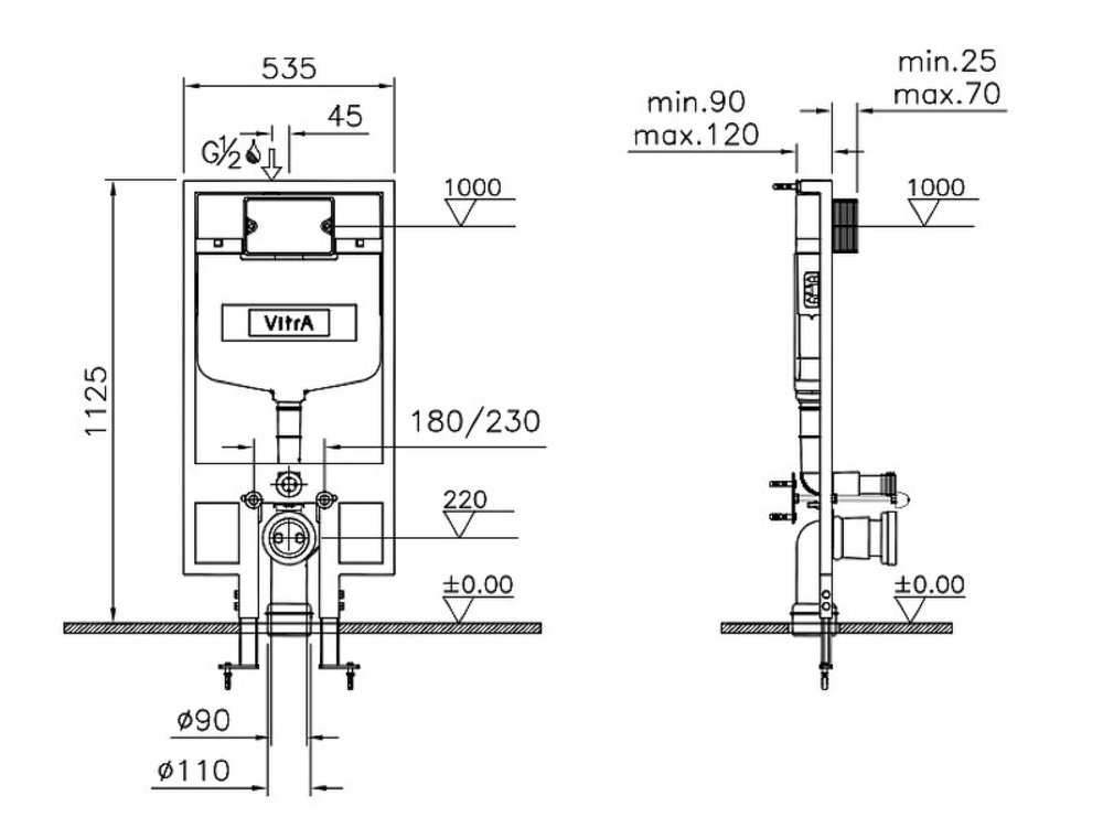 - Механическая Инсталляция VitrA для установки за гипсокартонной перегородкой и перед капитальной стеной.