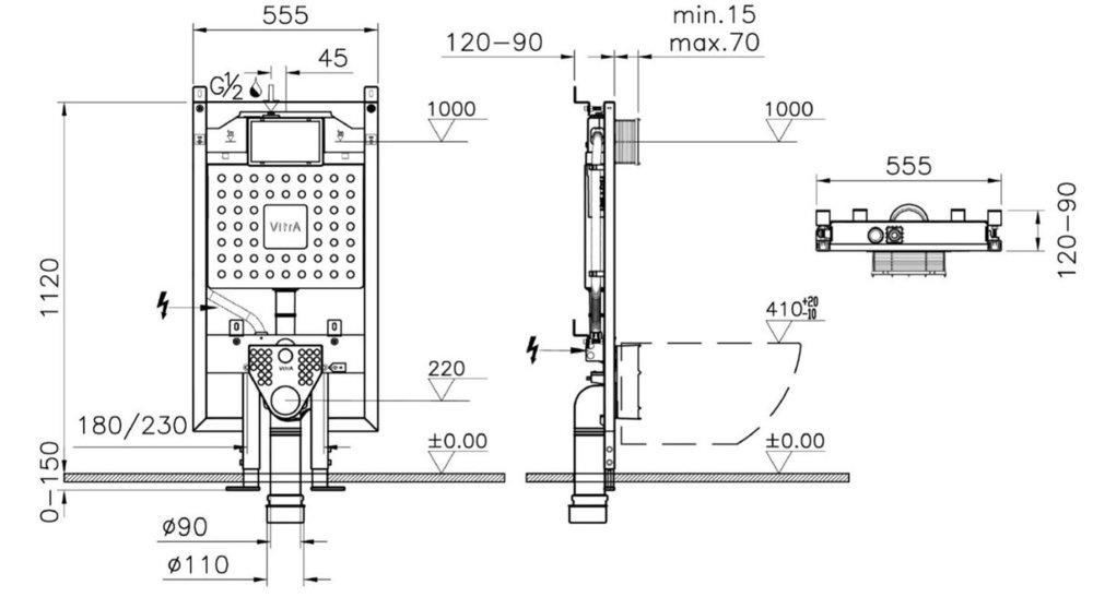 - Усиленная Механическая Инсталляция VitrA Professional для установки за гипсокартонной перегородкой и перед капитальной стеной.