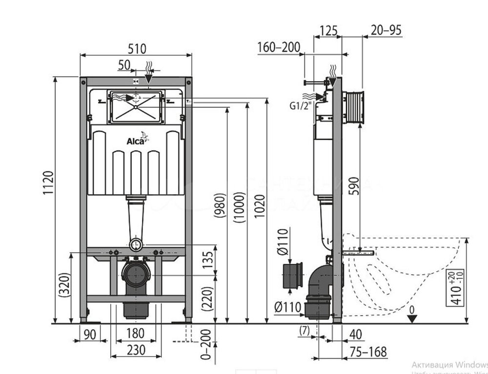 Инсталляция Alcaplast AM101/1120-4:1 RU M571-0001 для унитаза.
