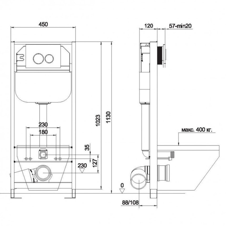 Aquatek Standart 45 Монтажная рама для подвесного унитаза 113 x 45 x 12 см, +звукоизоляционная прокладка
