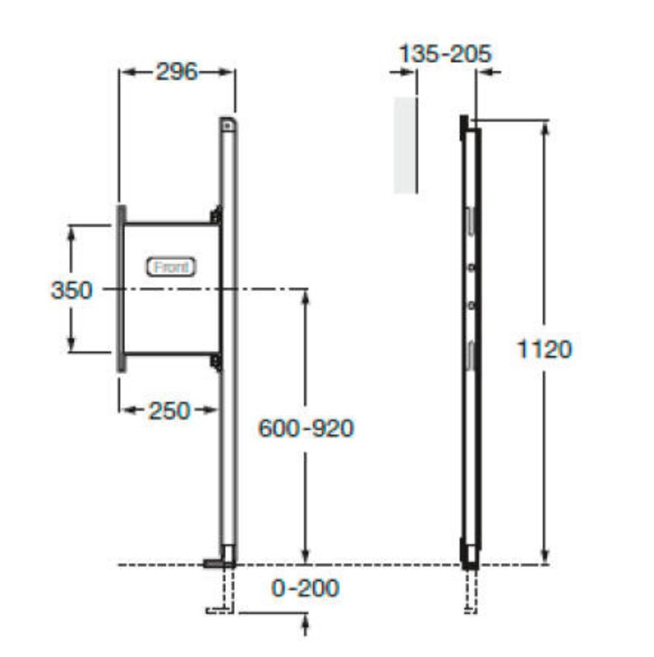 - Рама может быть установлена как справа, так и слева от инсталляции.