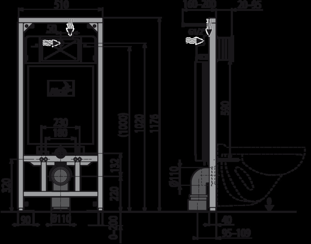 Система инсталляции AlcaPlast SET 3 v 1 AM101/1120-0001 с клавишей M71 хром