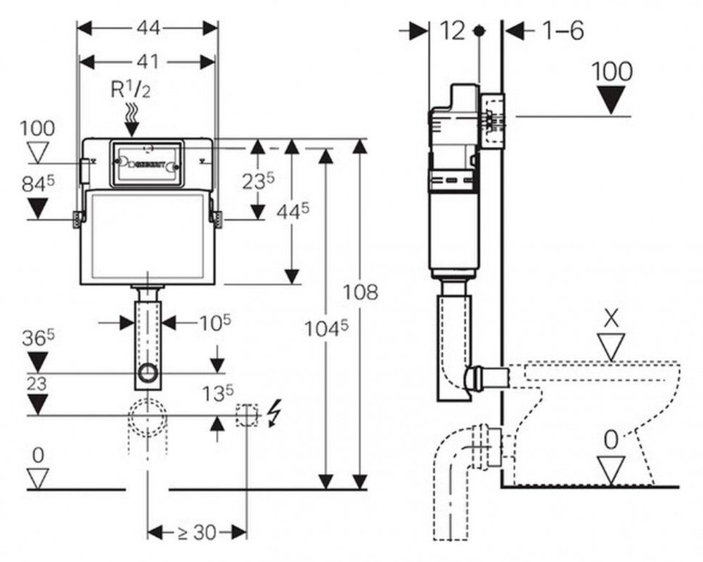 Смывной бачок скрытого монтажа Geberit UP 100 Delta 109.100.00.1