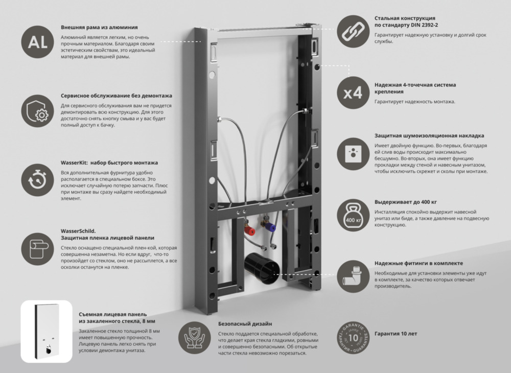 Пристенный модуль системы инсталляции WasserKraft Naab 86 86BDT.050.BL, для биде, цвет - черный
