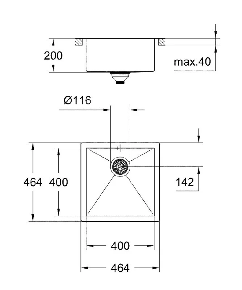 Мойка кухонная из нержавеющей стали Grohe K700 Cube 31578SD0 с корзинчатым фильтром и сливным гарнитуром, хром