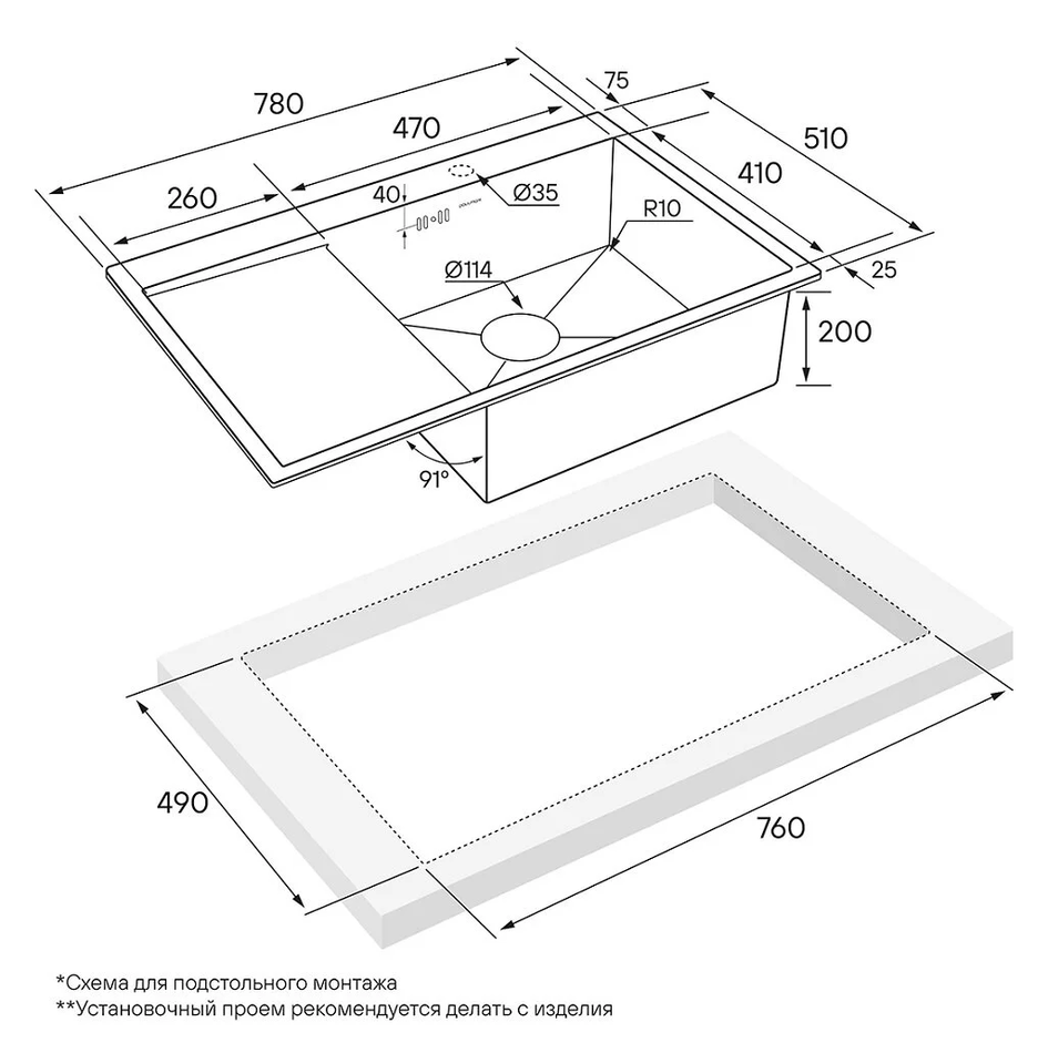 Мойка кухонная Paulmark Atlan PM217851-BSL/R, 78 см, брашированная нержавеющая сталь, левая/правая