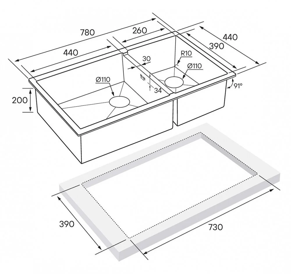 - Корзинчатый вентиль, сифон, слив-перелив: в комплекте