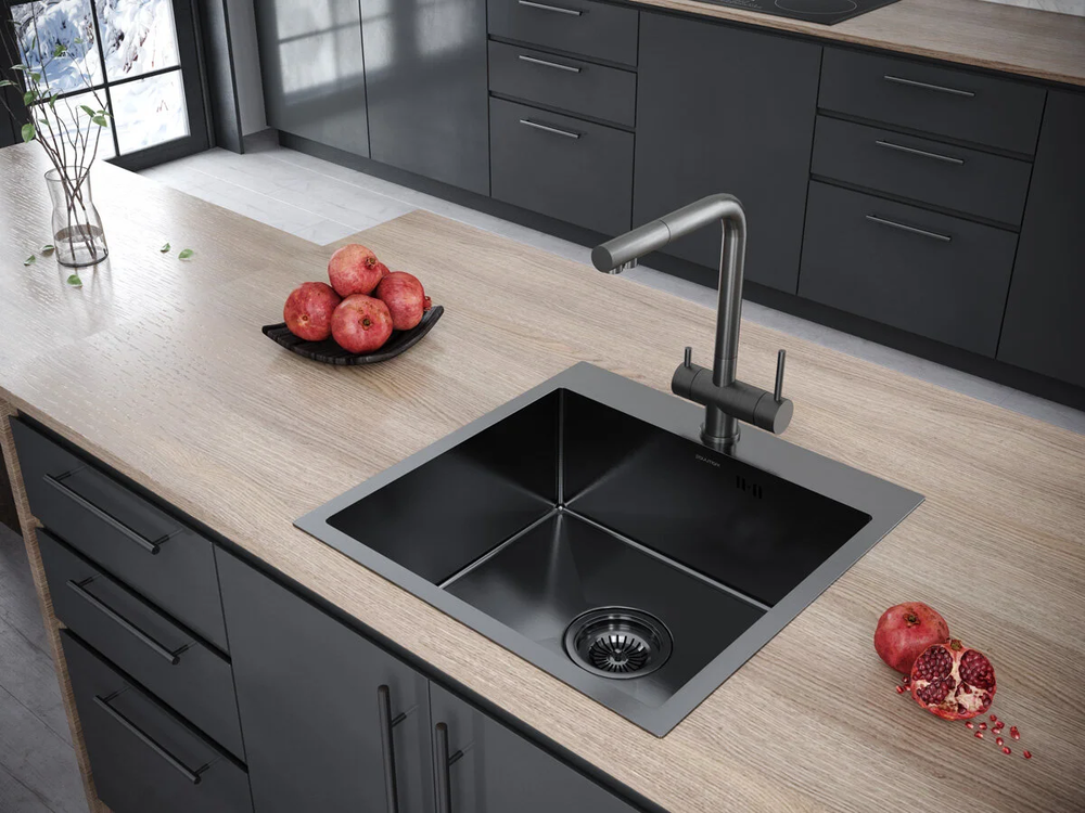 Мойка кухонная Paulmark Brim PM215951-GM, 59 см, вороненая сталь