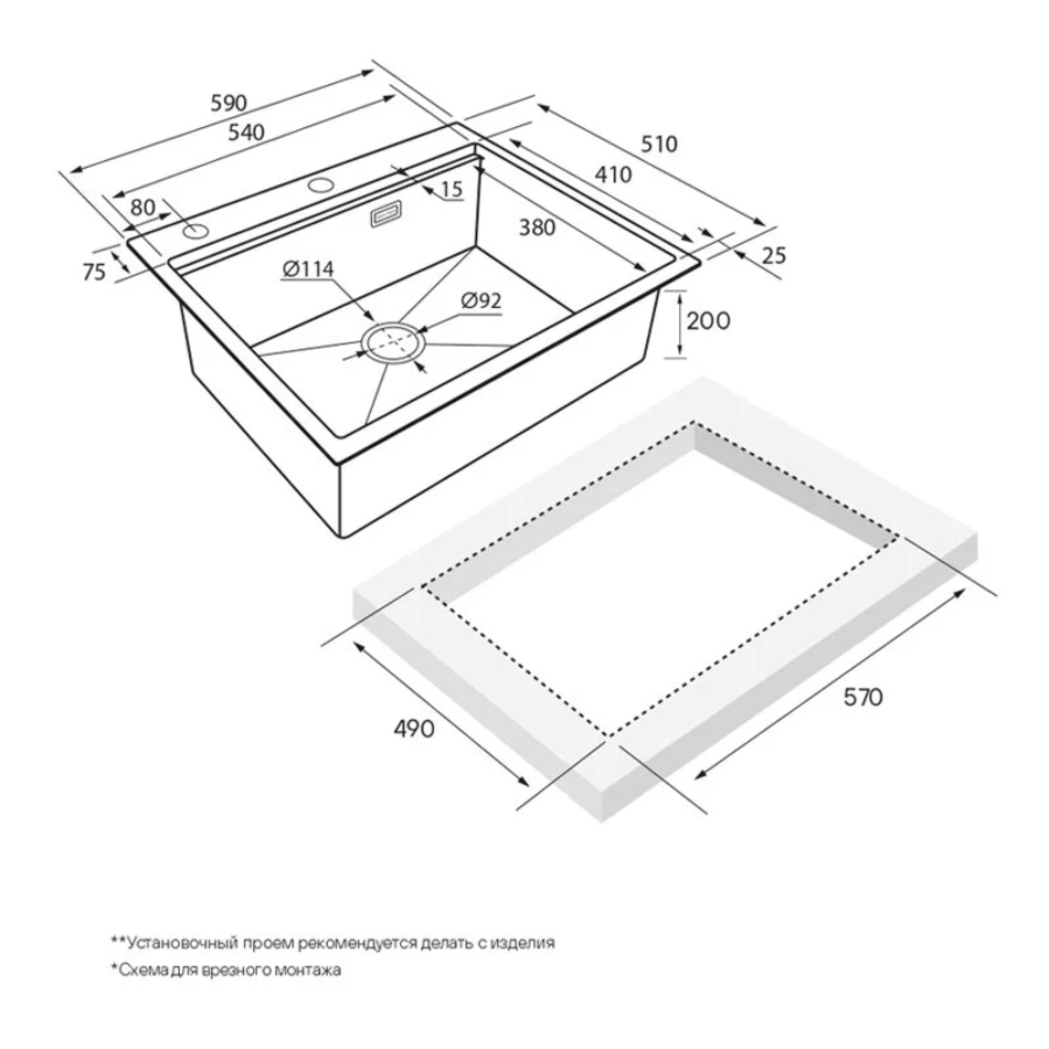 - Установка: встраиваемая сверху