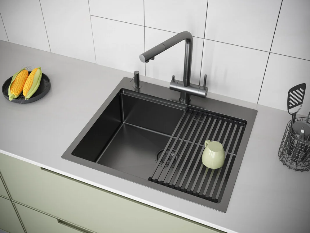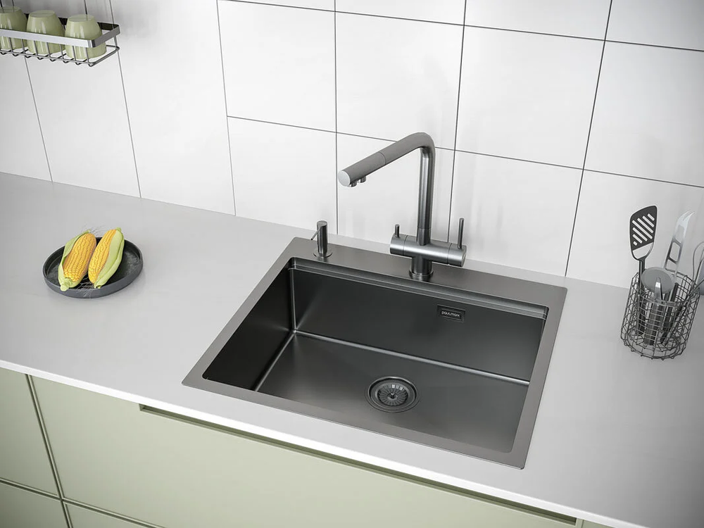 Мойка кухонная Paulmark Brim-Pro, 59 х 51 см, вороненая сталь, PM705951-GM