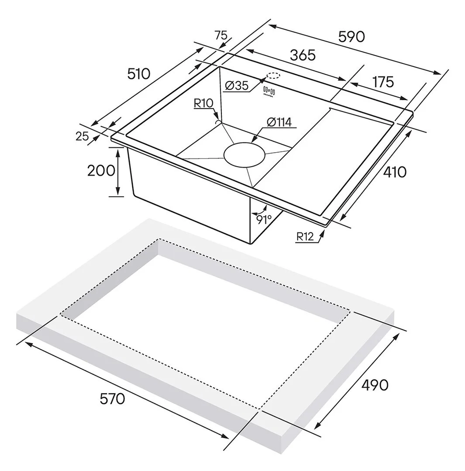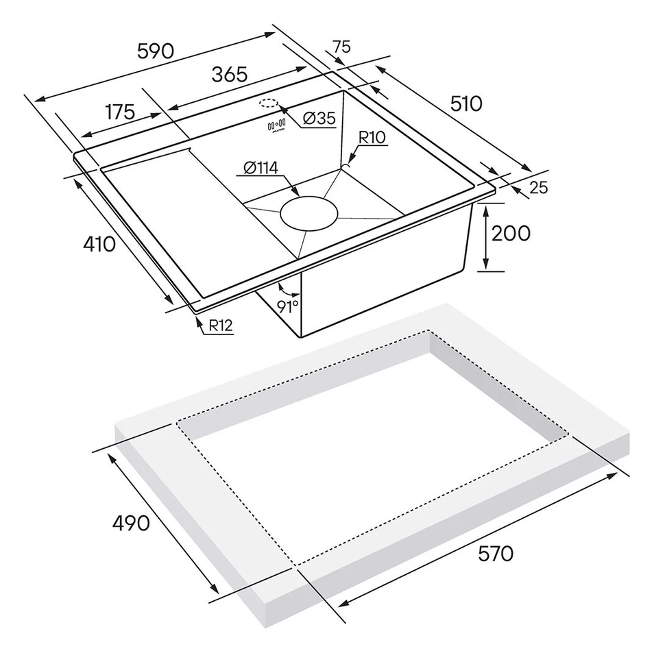 Мойка кухонная Paulmark Flank PM225951-BSL/R, 59 см, брашированная нержавеющая сталь, левая/правая