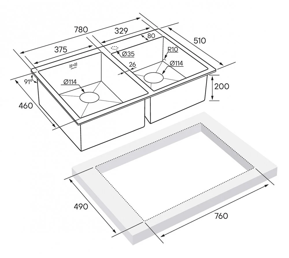 - Мойка кухонная, 2 чаши