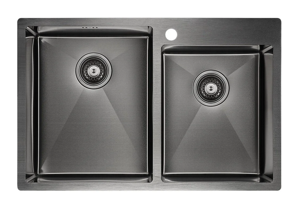 Мойка кухонная Paulmark Helfer PM237851-GM, 78 см, вороненая сталь