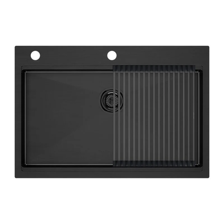 Мойка кухонная Paulmark Kroner 75 PM707551-GM+R405-GM, нержавеющая сталь, PVD покрытие, с ролл-матом Step, вороненая сталь