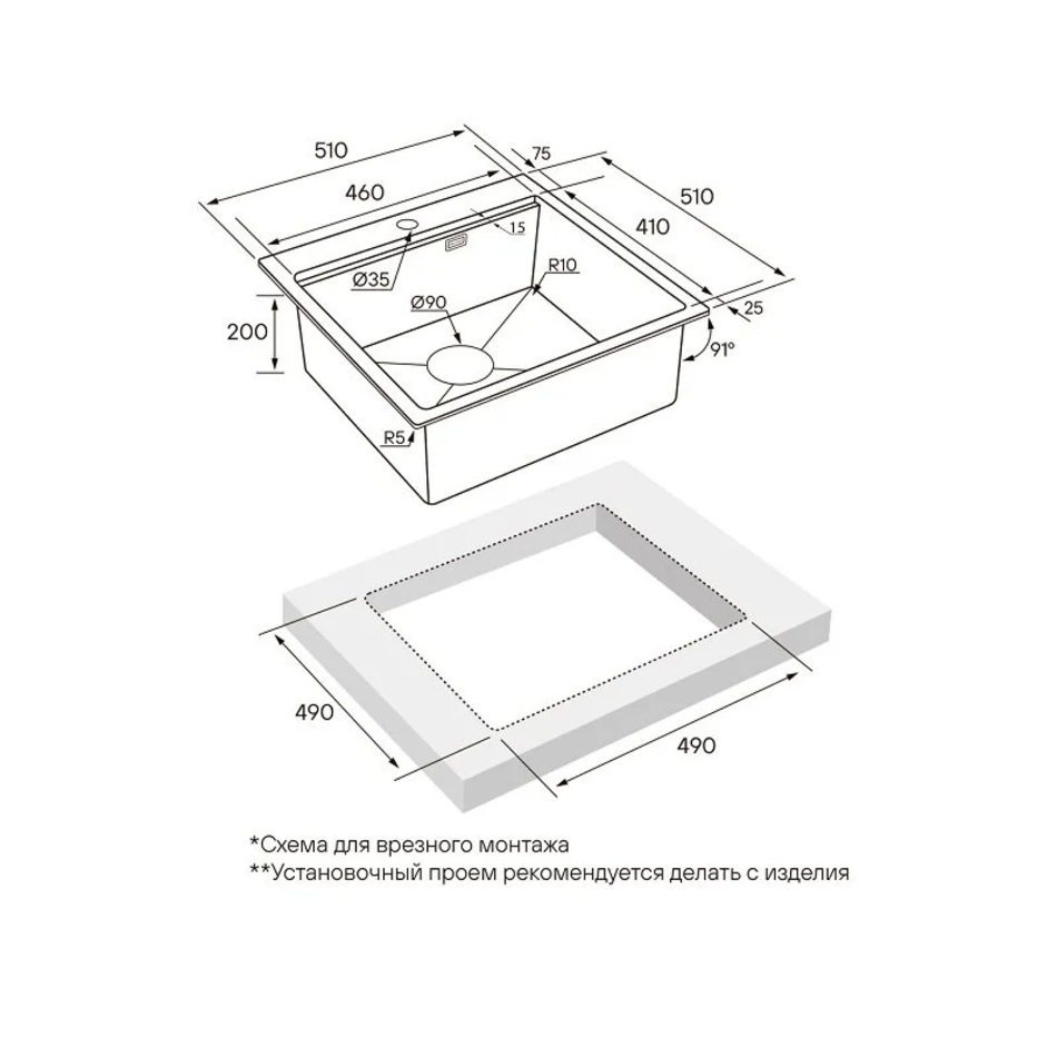 - Монтаж: врезной