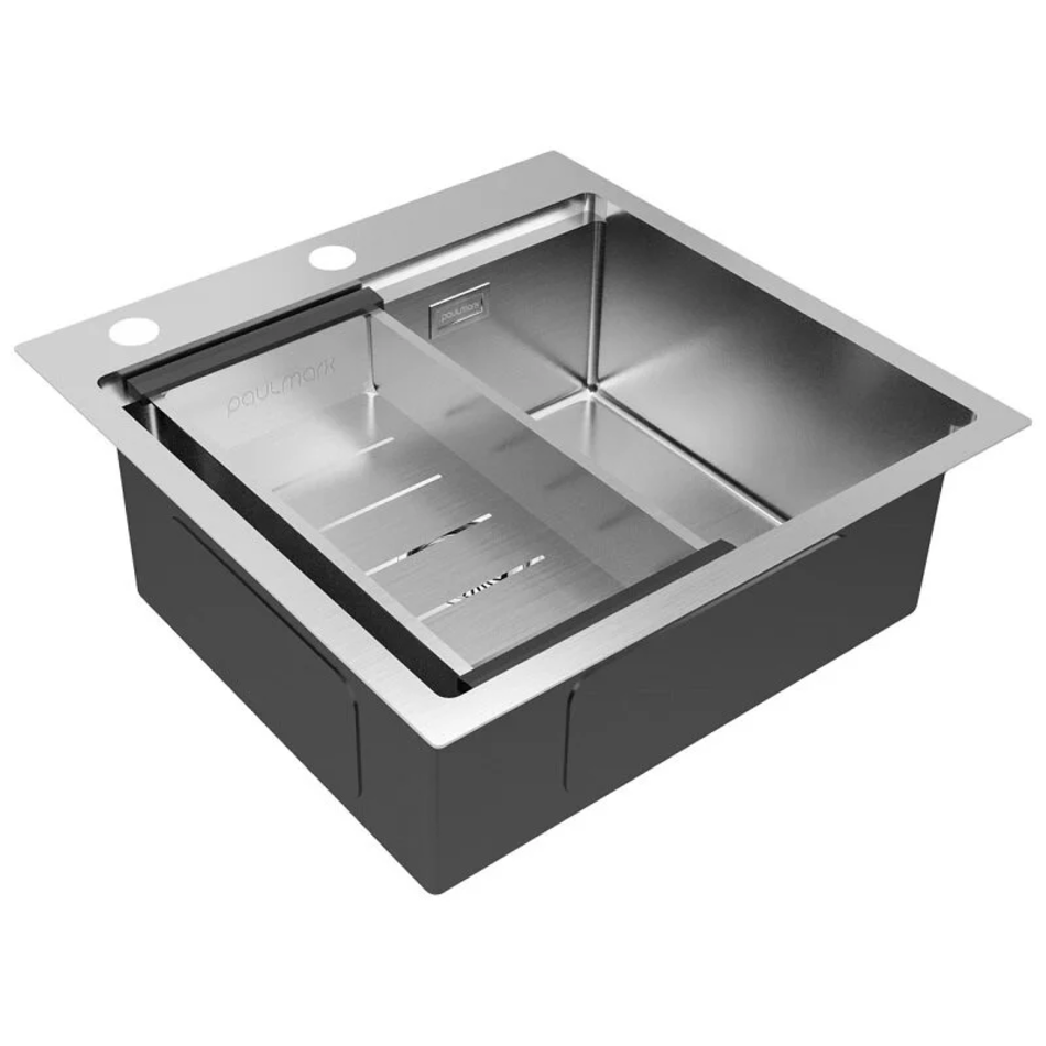 Мойка BRIM-PRO изготовлена из нержавеющей стали, а также имеет шумопоглощающее покрытие Stille® на внешней стороне чаши, благодаря чему бесшумна под напором струи воды. Прочный материал мойки позволяет избежать деформации от большого веса посуды и продуктов и обладает устойчивостью к термическим воздействиям. Мойка легка в уходе и чистке, а также имеет дополнительное отверстие для установки дозатора или кнопки для измельчителя, что помогает оборудовать рабочее пространство так, как вам удобно.Коландер ADVANCE изготовлен из высококачественной нержавеющей стали толщиной 1,2 мм. Бортики коландера изготовлены из пластика для легкого перемещения аксессуара и защиты поверхности мойки. Коландер многофункционален и может быть использован для промывки и сушки овощей и фруктов или для разморозки продуктов. Аксессуар разработан специально таким образом, чтобы его можно было удобно разместить на стенках мойки. Коландер не нужно придерживать, он прочно фиксируется в мойке и никуда не сдвигается.Покупая мойку и коландер от Paulmark в комплекте, вы не только экономите, но и сразу приобретаете стильное кухонное рабочее пространство, готовое к выполнению множества функций.