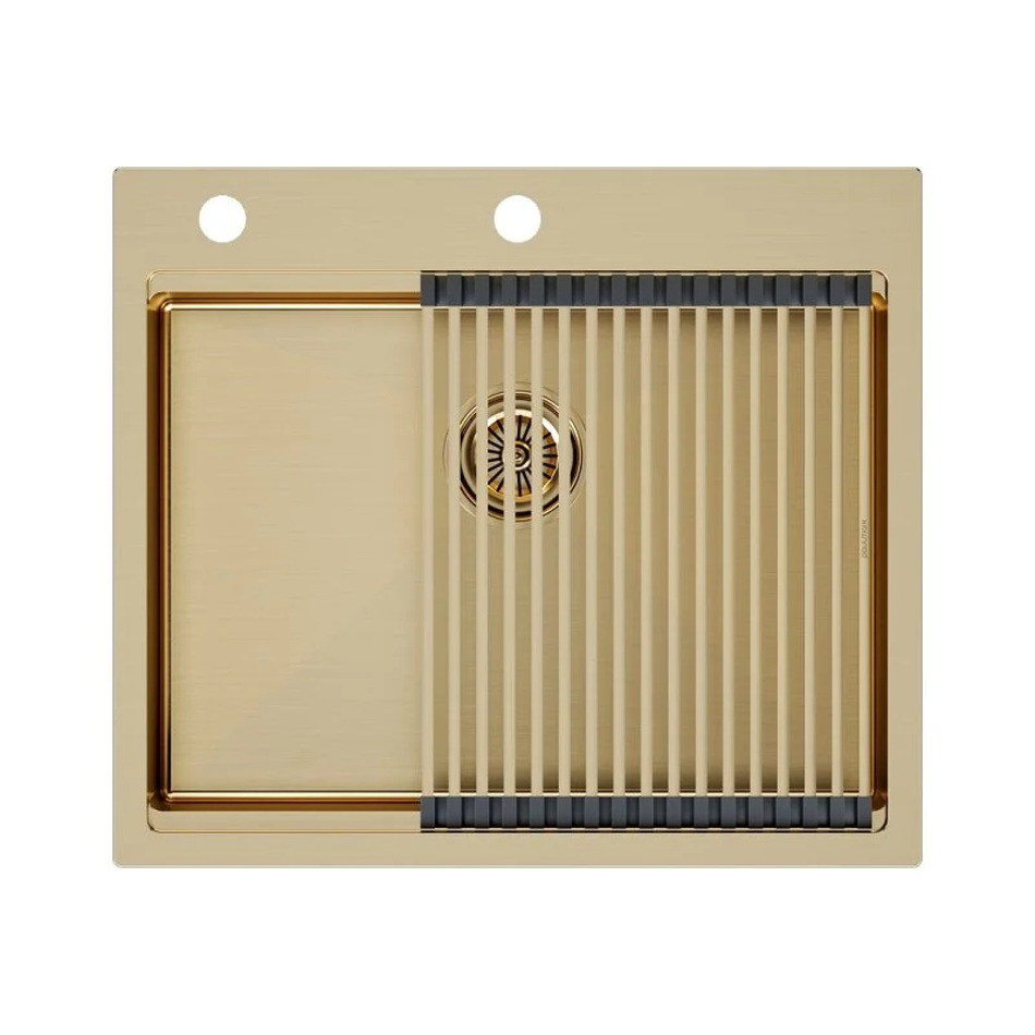 Мойка кухонная Paulmark Kroner PM705951-BG+R405-BG, 59 см, нержавеющая сталь, PVD покрытие, с ролл-матом Step, золото брашированное