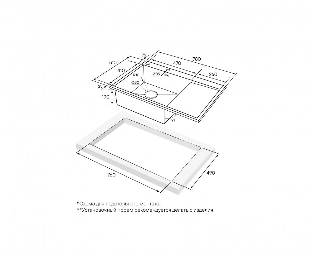 Функциональное плоское крыло; Готовые отверстия для кухонного смесителя и дозатора(кнопки измельчителя).