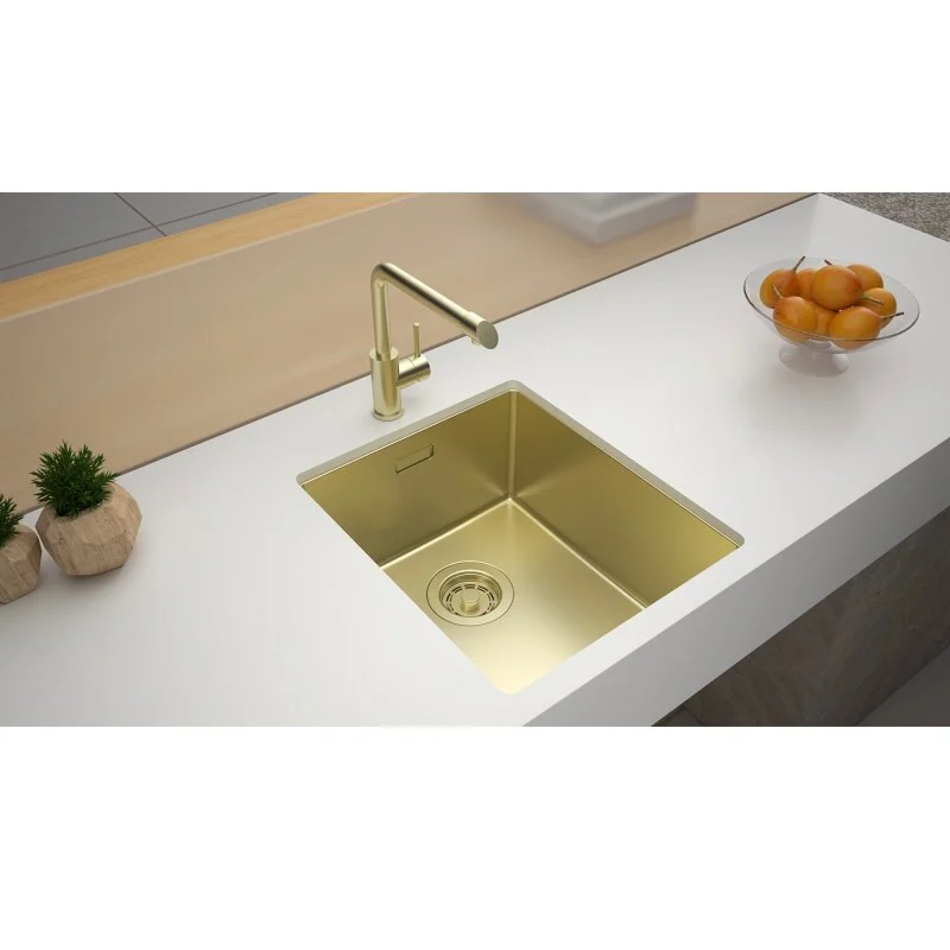 Мойка кухонная Paulmark Lassan LA38-LG, 38 см, нержавеющая сталь, PVD покрытие, цвет золото светлое