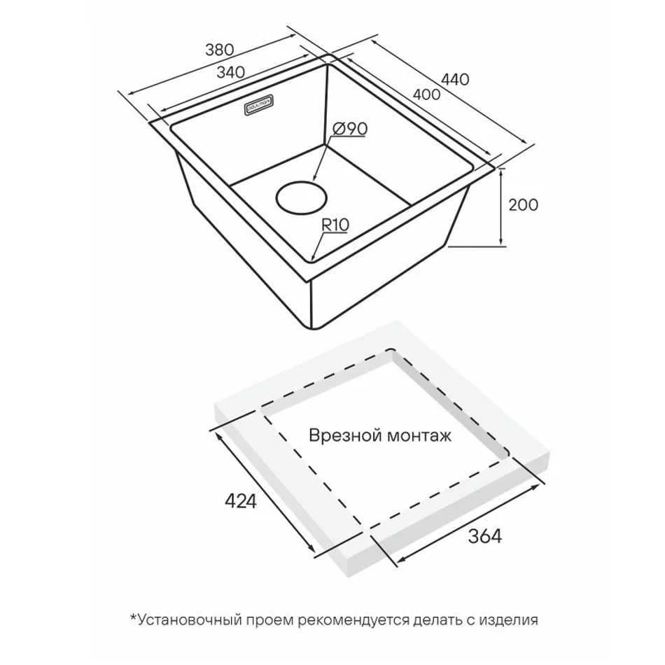 - Размер чаши (ДхШхВ): 340 х 400 х 195 мм