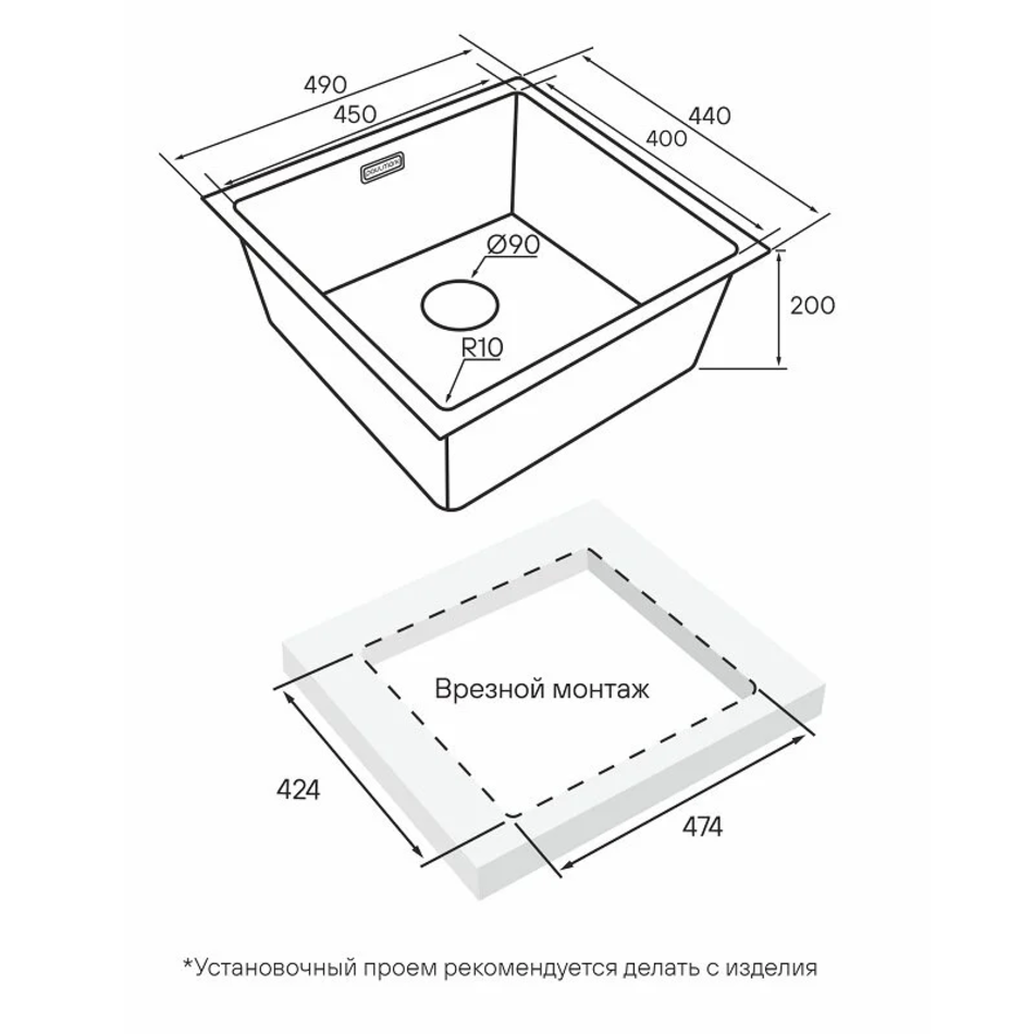 Монтаж: Мойки LASSAN UNI могут быть установлены как врезным способом поверх столешницы, так и под столешницу (подстольный монтаж).